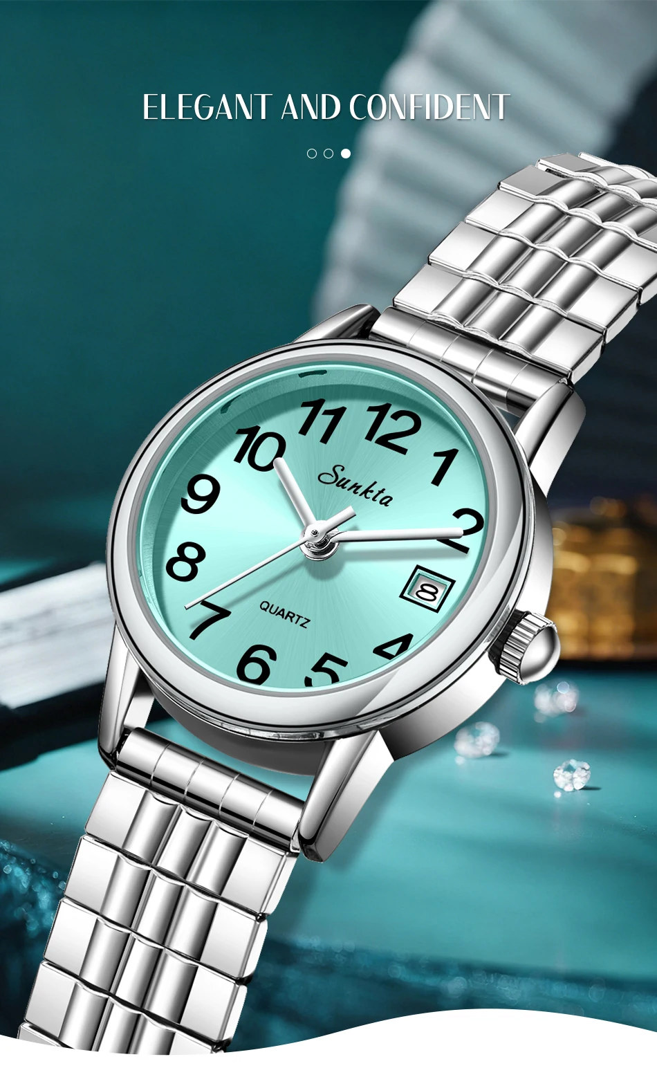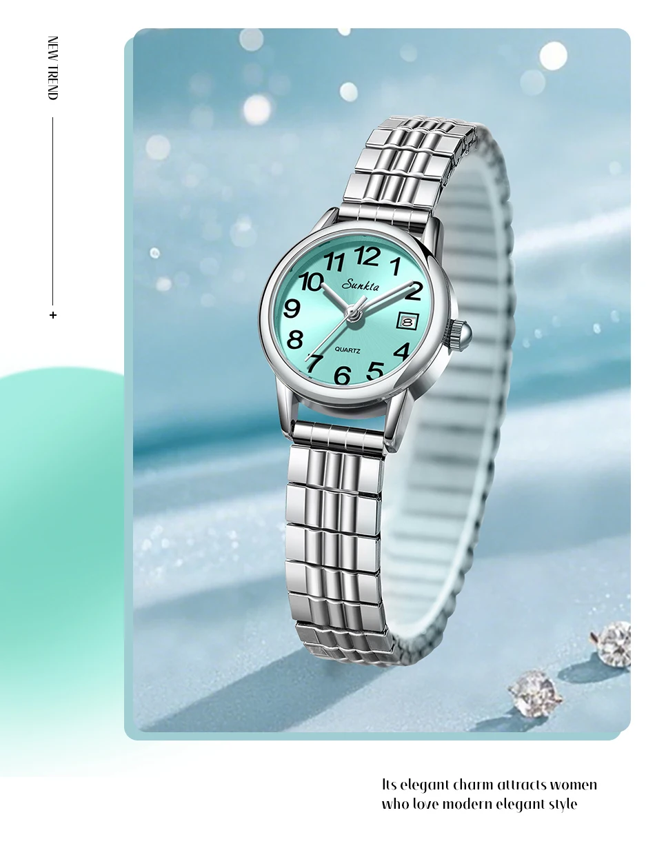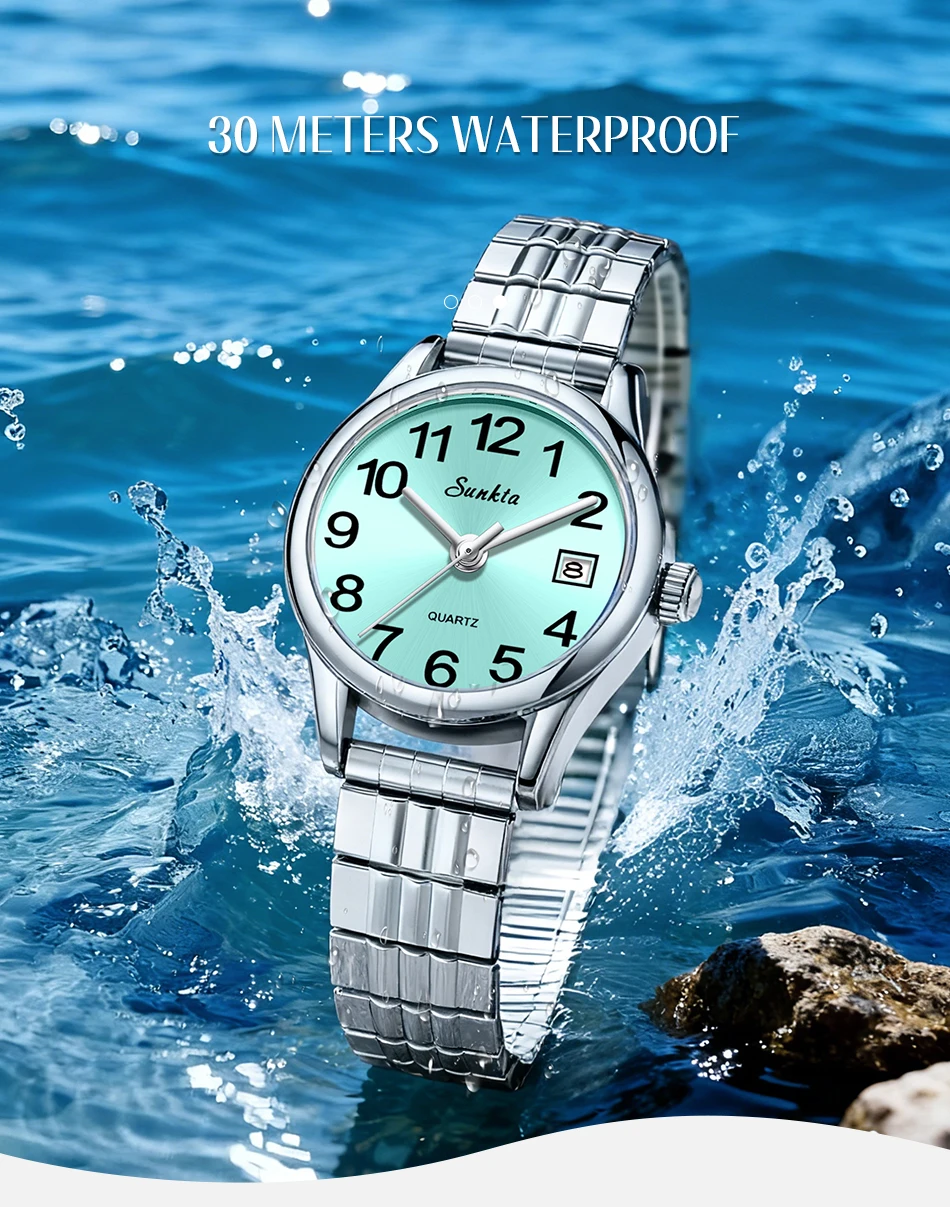 2026 SUNKTA Luxury Womens Watch Elegant Fashion Quartz Wristwatches 30M Waterproof Steel Strap Watches Ladies Gifts Reloj Mujer