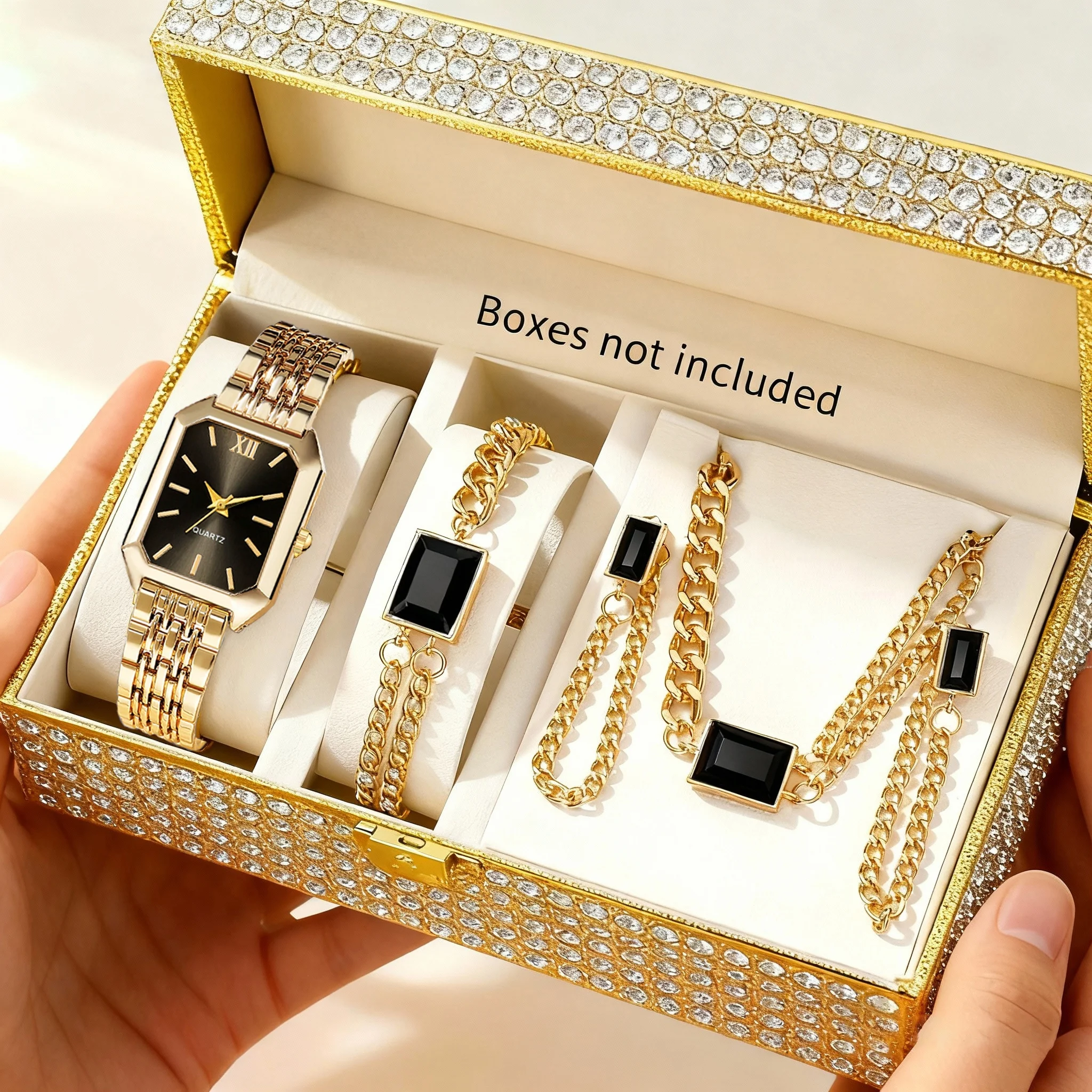 5PCS/Set Elegant Rectangle Women Watches Fashion Ladies Quartz Wristwatch Jewelry Set Reloj Mujer Girls Clock Gift(Without Box)