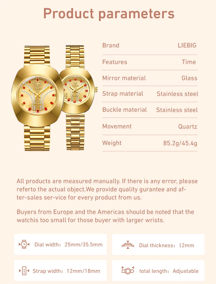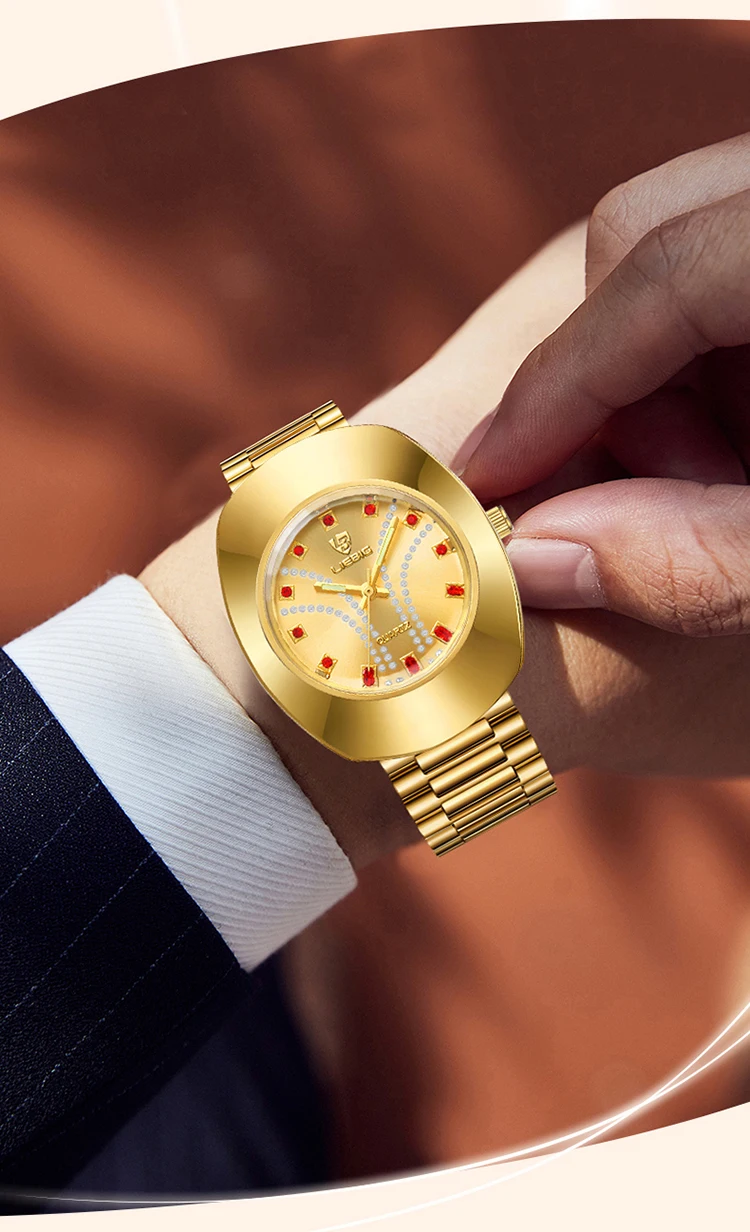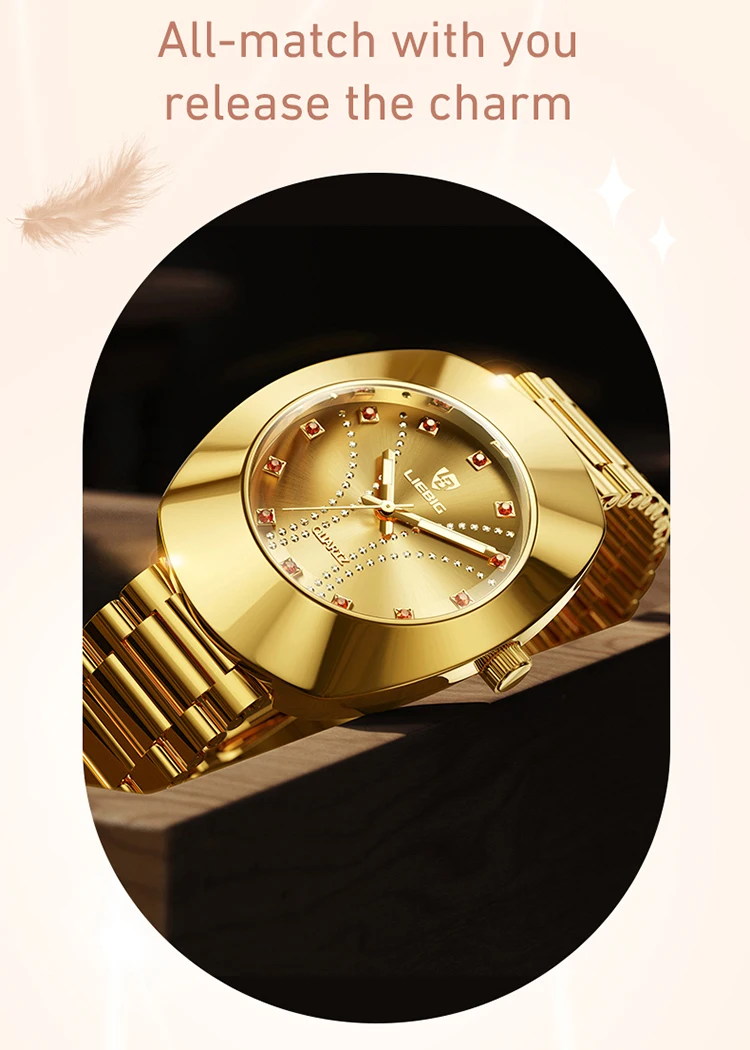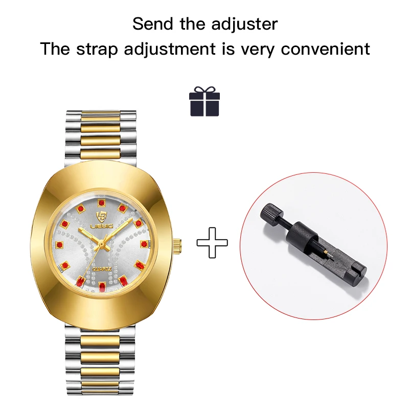 LIEBIG Luxury Oval Golden Stainless Steel Quartz Watch Women Men Casual Female Male Clock Waterproof Wristwatch Relogio Feminino