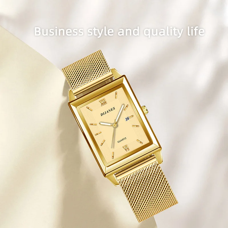 New Luxury Fashion Gold Watch for Women Men Stainless Steel Quartz Wristwatch Women's Watches Ladies Calendar Clock