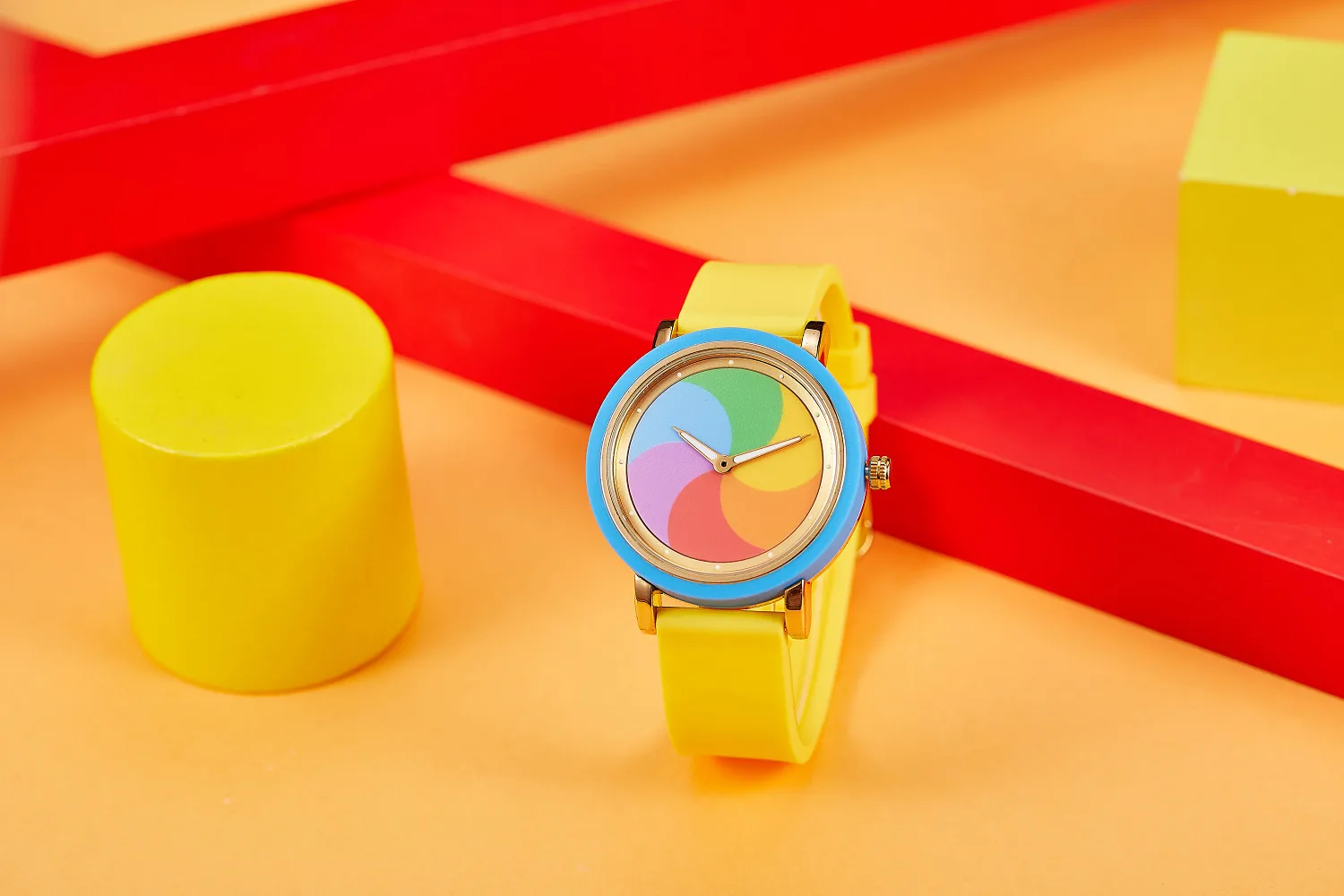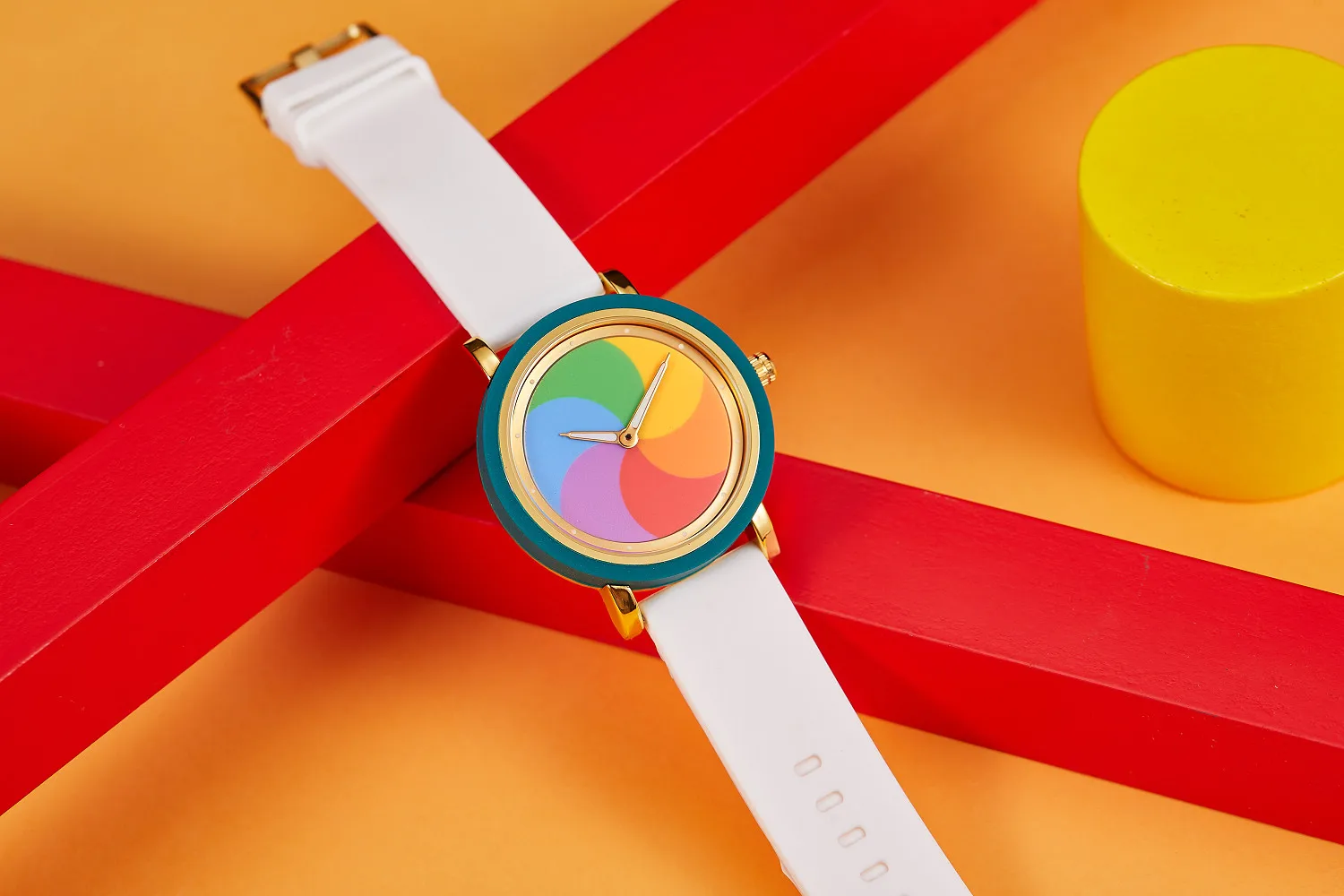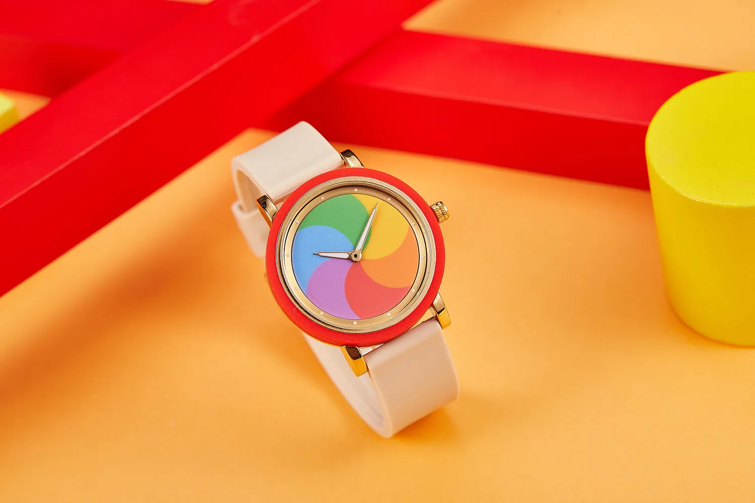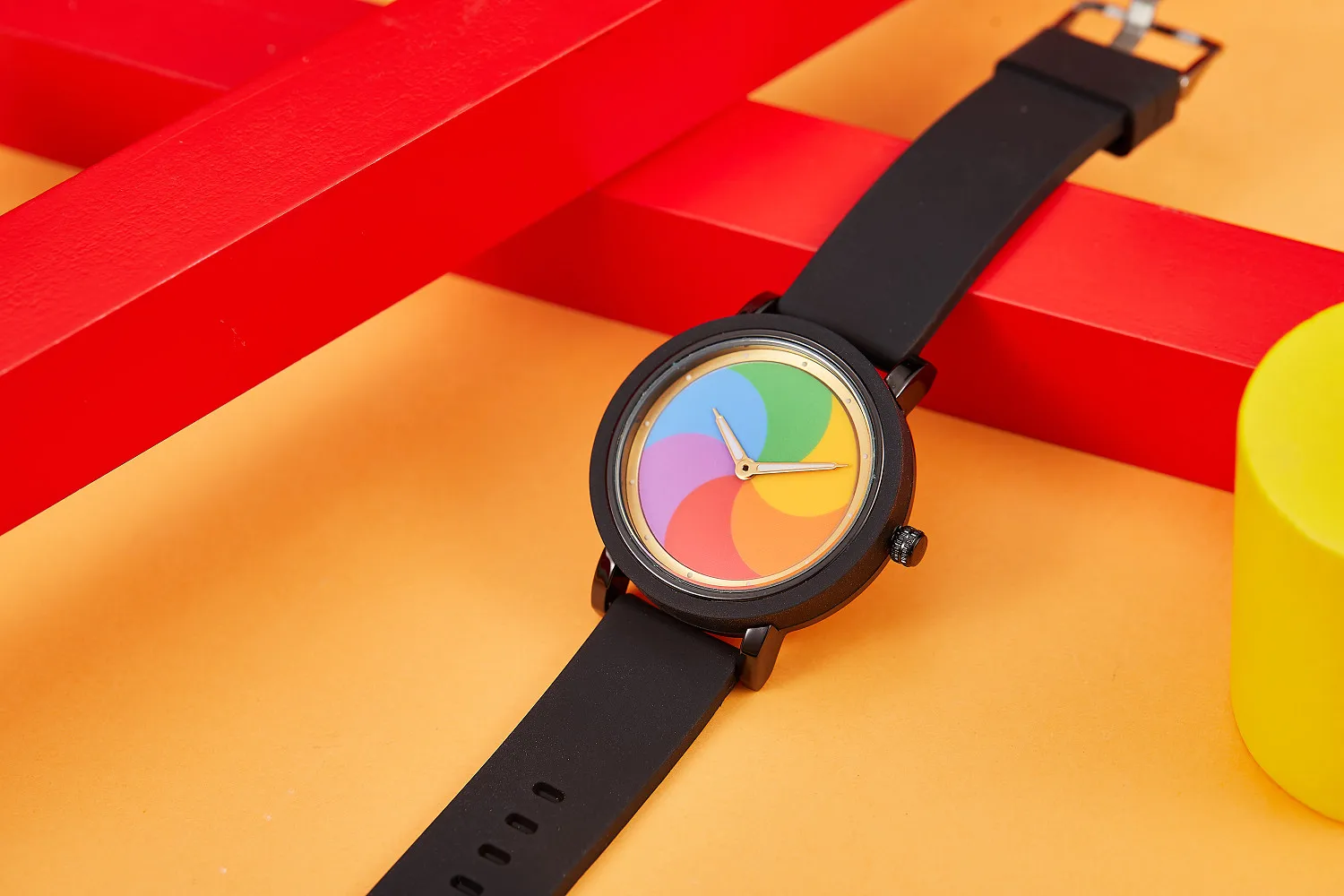 Personality leisure rainbow rotating dial silicone strap round quartz watch