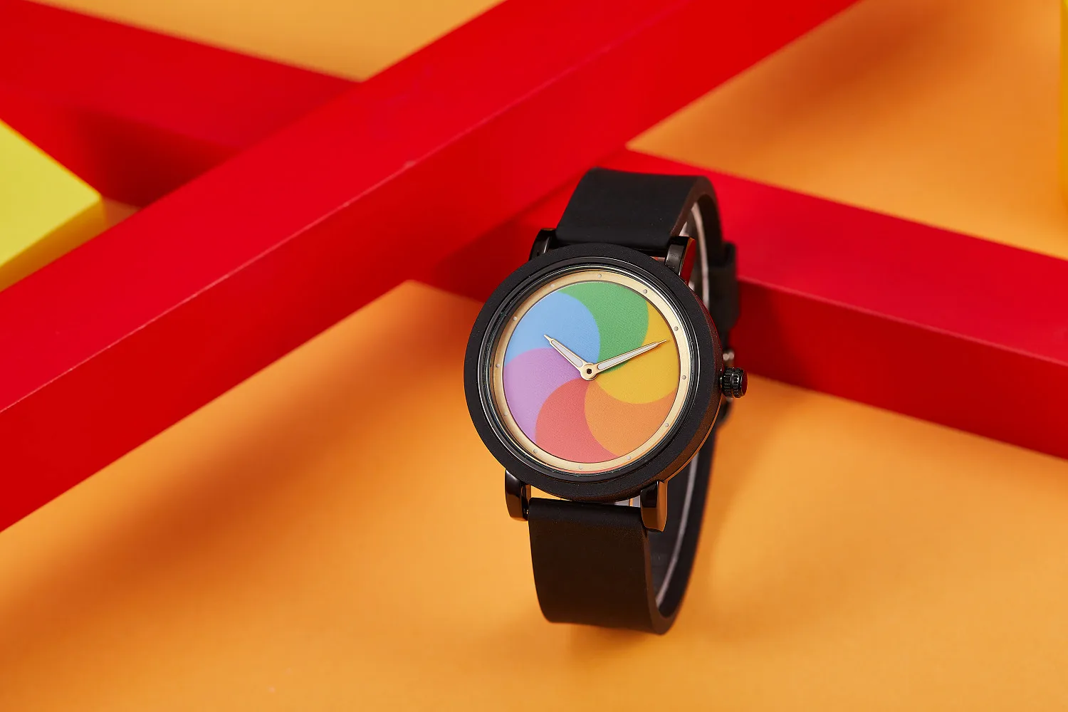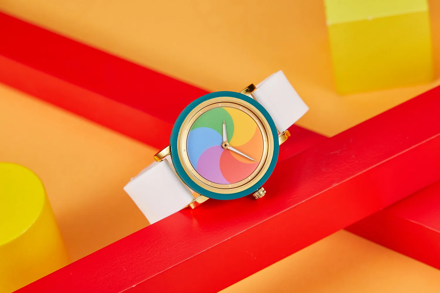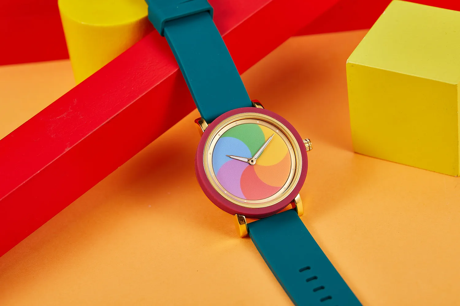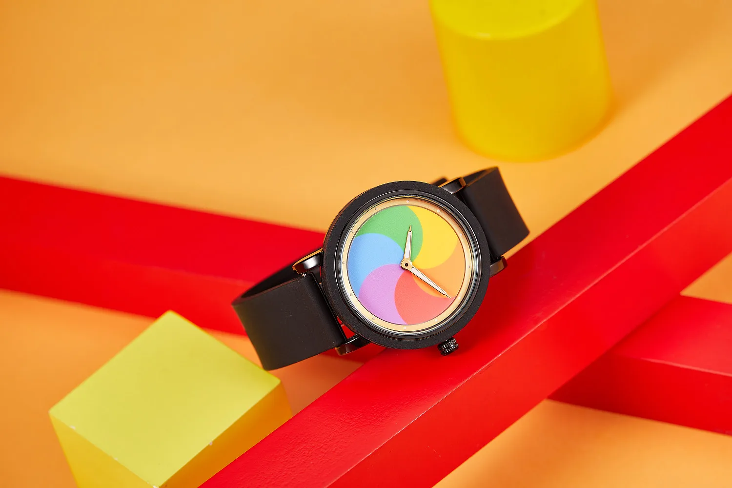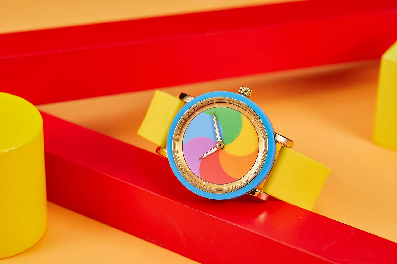 Personality leisure rainbow rotating dial silicone strap round quartz watch