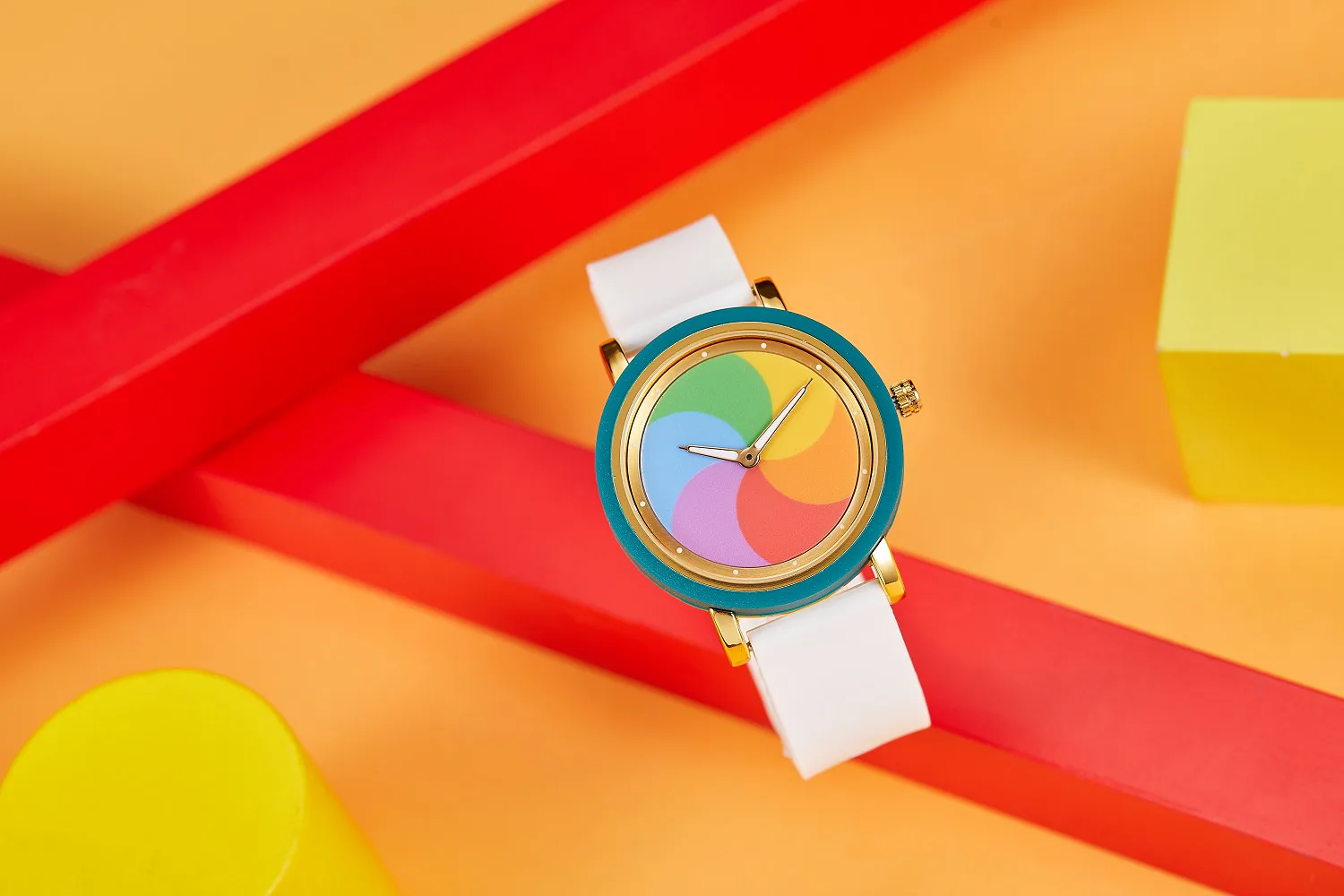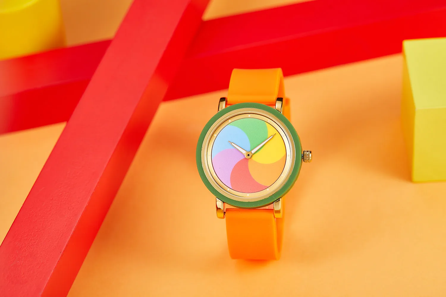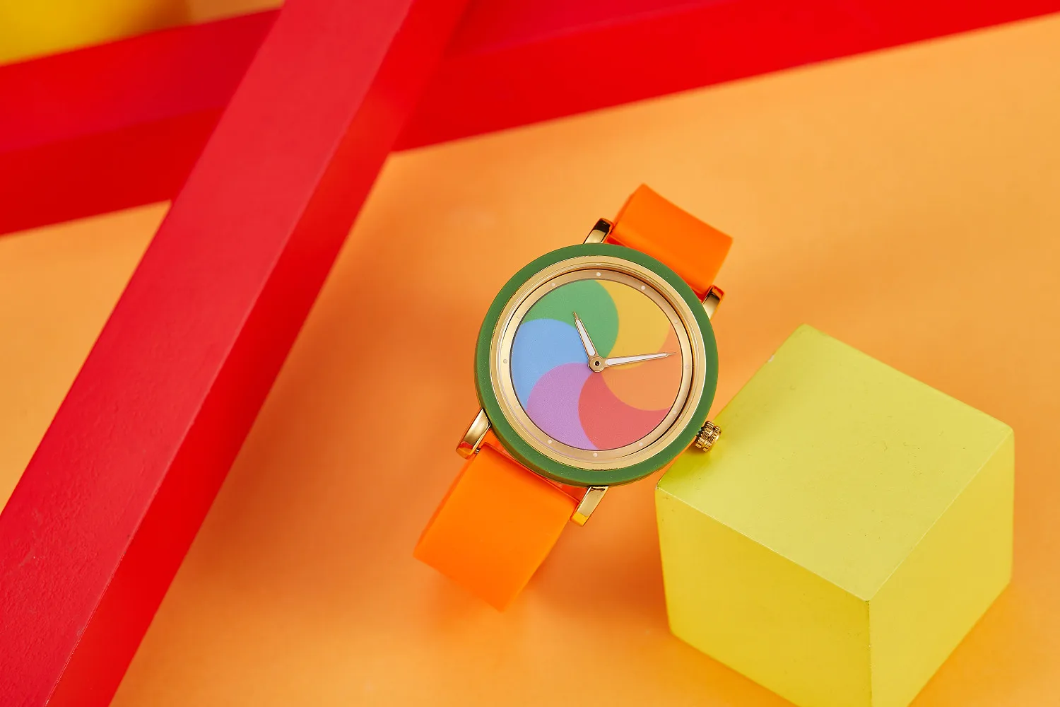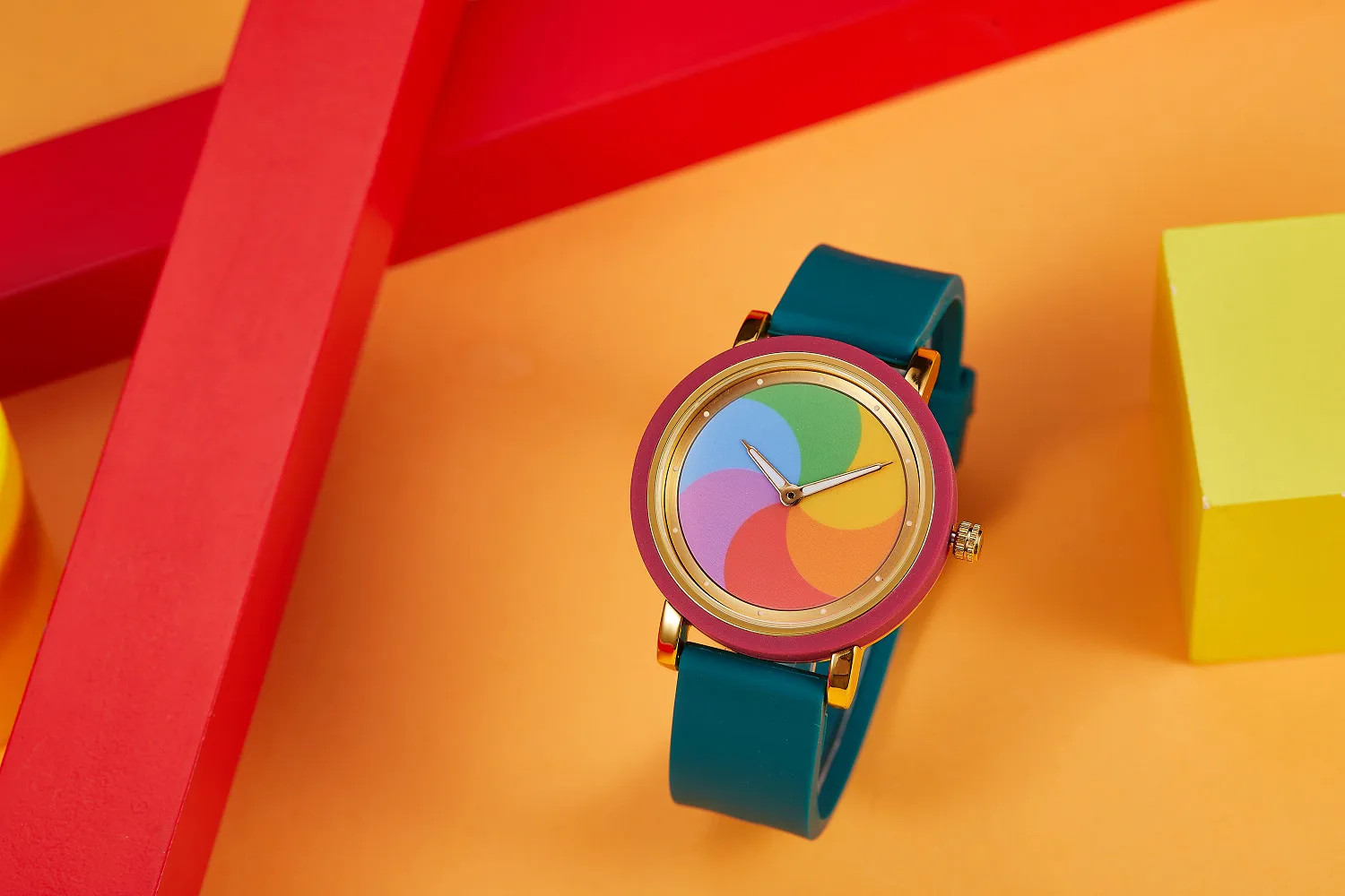 Personality leisure rainbow rotating dial silicone strap round quartz watch